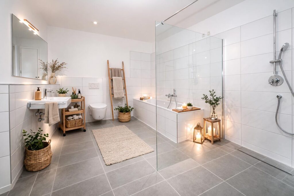 - großes Bad mit bodengleicher Dusche und Wanne
