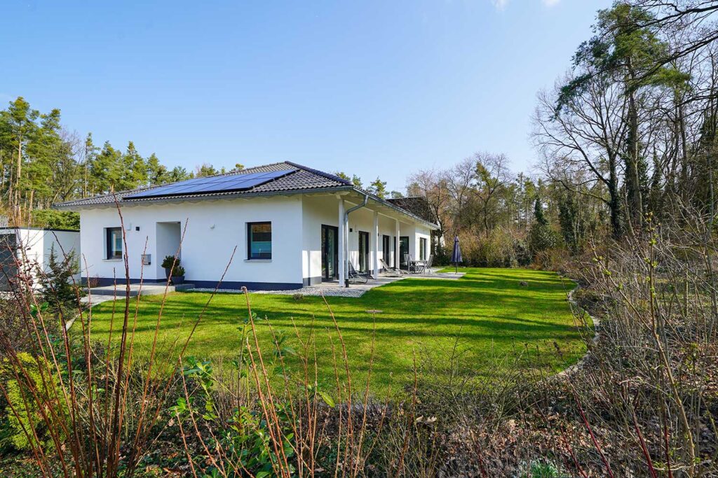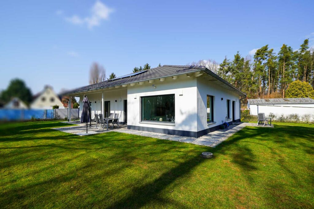 Der Bungalow (Baujahr 2021) liegt in einer Sackgasse ohne Durchgangsverkehr und überzeugt durch eine durchdachte Raumaufteilung auf einer Ebene. Herzstück des Hauses ist der großzügige Wohn-, Koch- und Essbereich mit großen Fensterflächen und direktem Blick in den Garten und zum angrenzenden Wald. Drei Schlafzimmer, ein Homeoffice sowie zwei Bäder bieten ausreichend Platz für komfortables Wohnen und flexible Nutzungsmöglichkeiten.