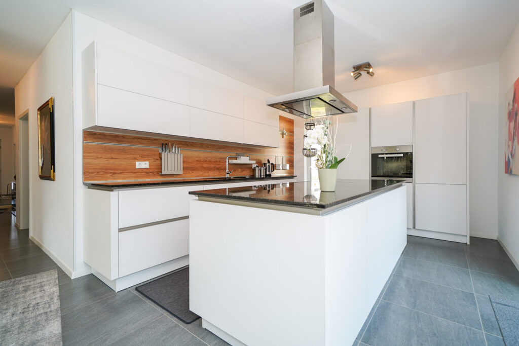 • hochwertige Einbauküche mit Kücheninsel