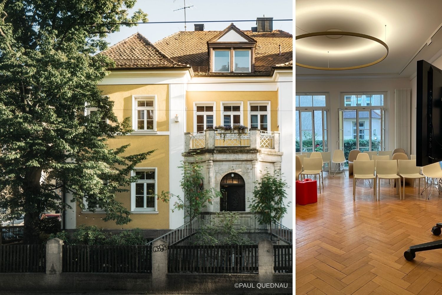 In der stilvoll renovierten Jugendstilvilla Villibald trifft Geschichte auf kreative Moderne. Im Nürnberger Stadtteil Gärten h. d. Veste, unweit der Nürnberger Burg, überzeugt die Location durch ihren besonderen Charme, hohe Decken und liebevoll gestaltete Räume – ein inspirierender Ort für unseren Info-Vortrag.