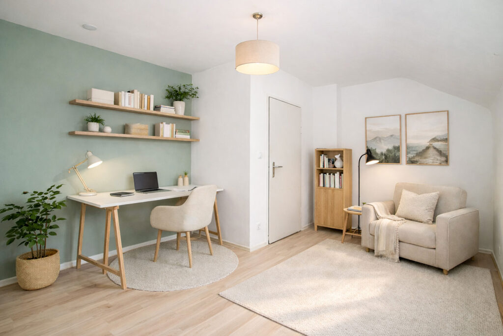 Zusätzlichen Raum bietet das teilausgebaute Dachgeschoss: Neben einem praktischen Dachboden steht ein bereits ausgebautes Zimmer zur Verfügung – ideal als Homeoffice.