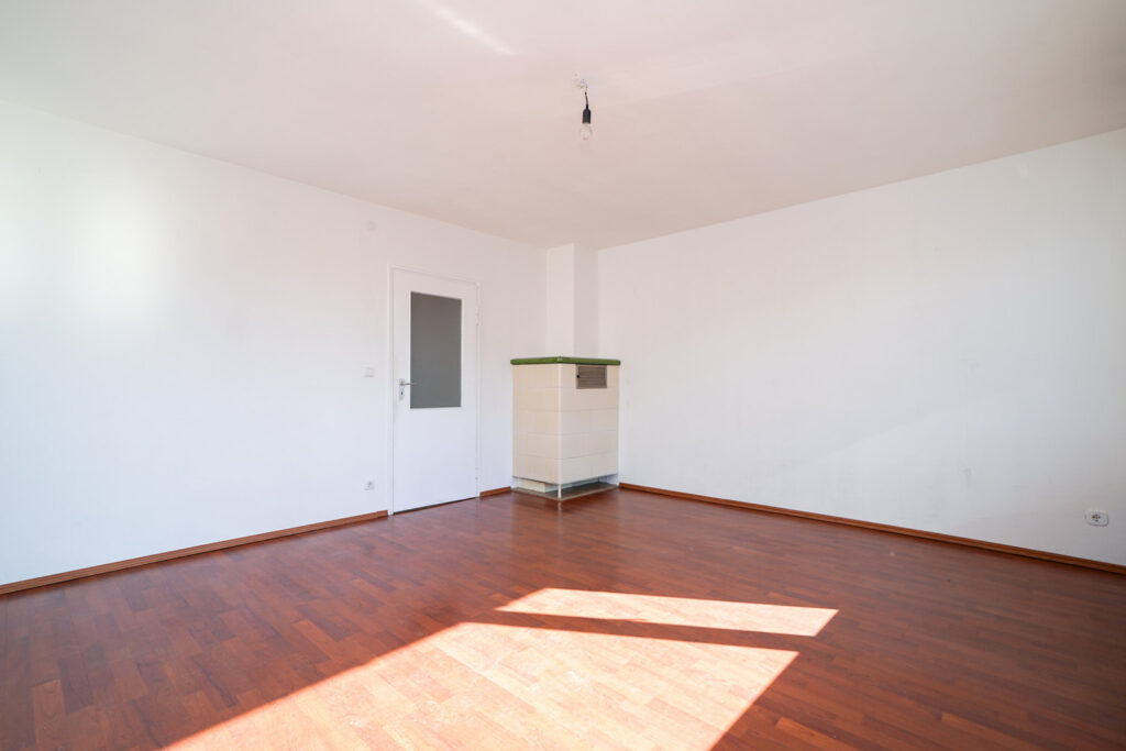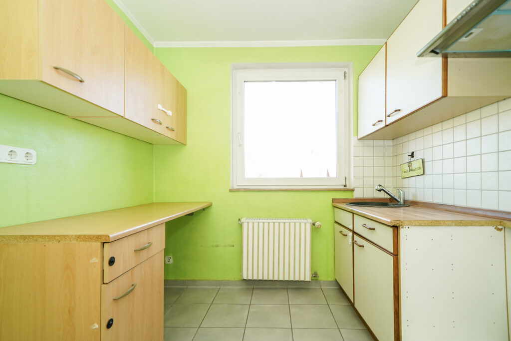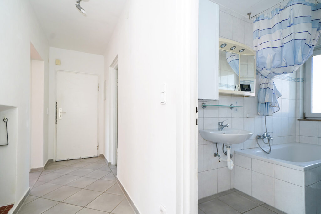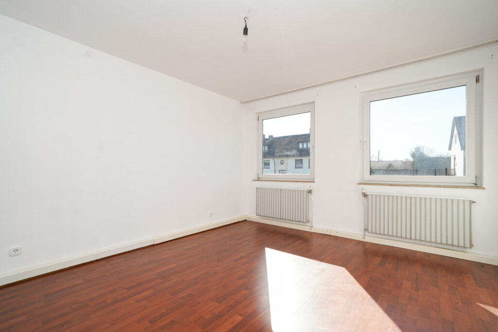 Die Wohnung im 1. Obergeschoss steht aktuell leer und bietet rund 66 m² Wohnfläche mit drei gut geschnittenen Zimmern, Küche und Tageslichtbad. Vom Wohnbereich gelangen Sie auf den Süd-Balkon – ein schöner Platz für sonnige Stunden. Nach einem frischen Anstrich können Sie hier direkt einziehen und sich Ihr neues Zuhause nach und nach gestalten.